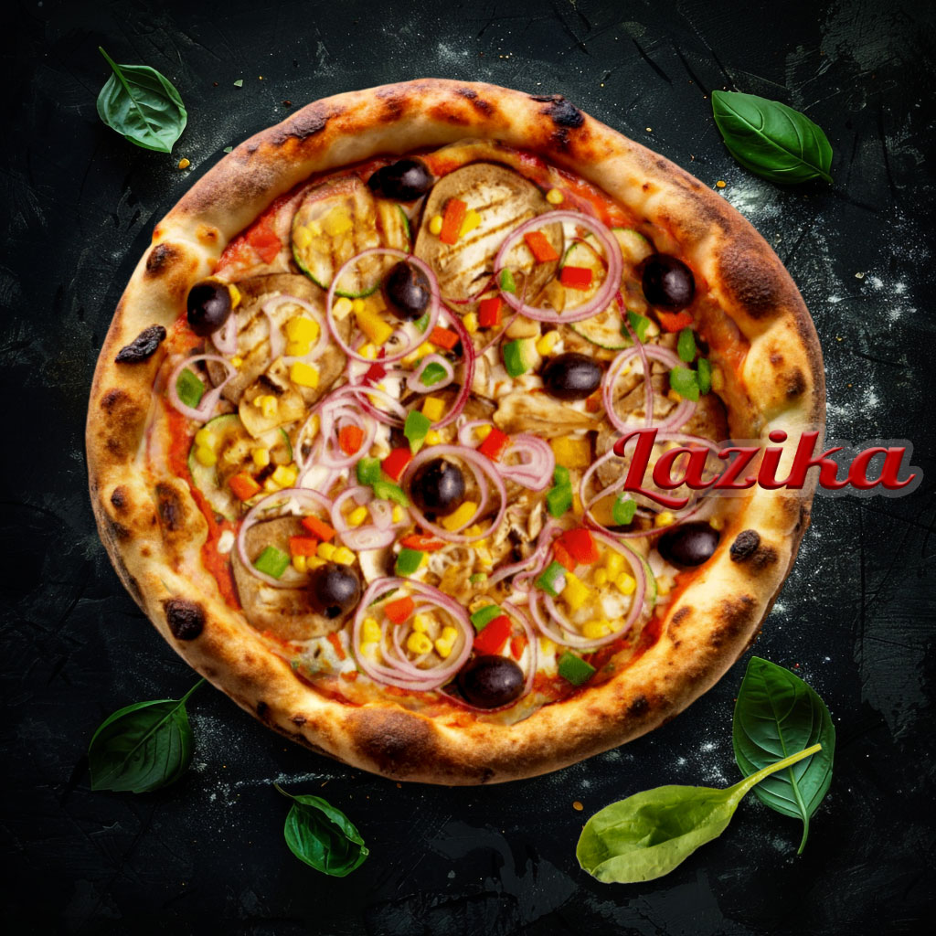 gewünschte Sauce, Mozzarella, Champignons, Aubergine, Zucchetti, Spinat, Artischocken, Peperoni, Oliven, Zwiebeln, Oregano